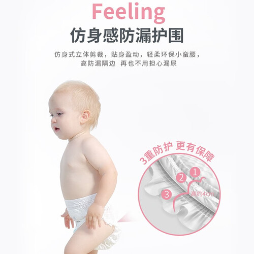 芯体柔软舒适,能够快速吸水锁水,保持表层的干爽亲肤。不含甲醛和荧光剂,宝宝穿得更安心。