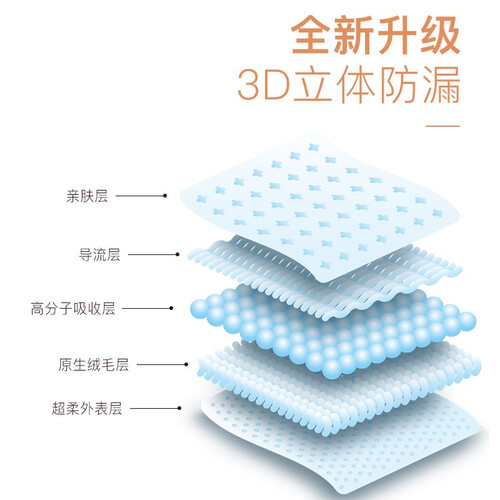 采用云柔泡泡透气层,有助持续排出闷热湿气,持久舒爽。无纺布面料搭配高分子吸水珠,瞬吸尿液,不怕漏。
