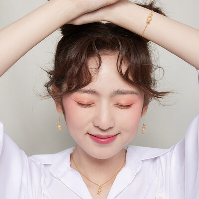 代表甜蜜的糖果元素,结合品牌的花丝镶嵌工艺,展现精雕细琢的美感,融入淡水珍珠,整体造型简洁大气更吸睛。