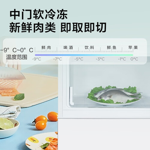 多空间存储,食物分开存放避免串味,保鲜时间更长。中门低温保鲜,肉类海鲜无需解冻就能切片,省时又省力。
