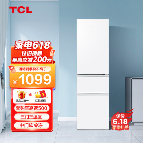 TCL 多空间省电三门冰箱