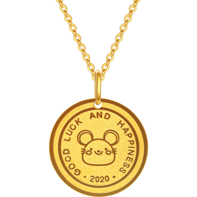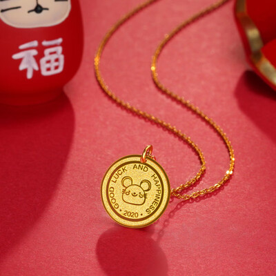 纪念币造型吊坠,可专属定制生肖或星座以及祝福语图案,守护宝宝健康成长。18K金材质,外观更似金牌,亲肤细腻佩戴舒适。
