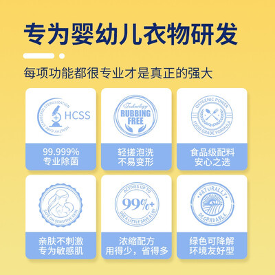 专为皮肤敏感的婴幼儿研发的一款洗衣粉,配方温和,清洁力强,且无残留,让宝宝远离经皮毒,妈妈更放心。