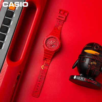 表身以赤焰红为主色调,表带融入企鹅公仔身上的定制图案,呈现时尚科技潮感。多方位防震结构设计,更抗离心力和震动,尽显品质。