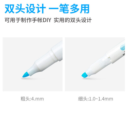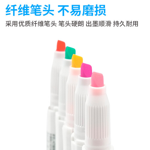 笔杆上带有色彩标识,笔的颜色一目了然,方便辨认。纤维笔头的设计,长时间使用不易磨损,使用寿命更长。