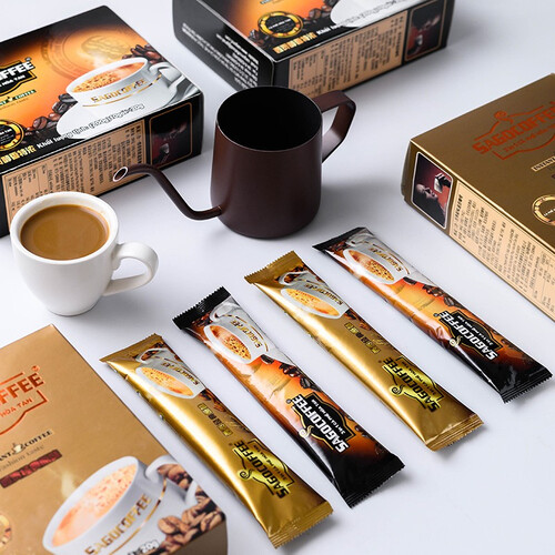 咖啡采用三和一复配工艺制作,可保留浓郁的现磨口感,使香味更浓厚。小条独立式的包装,质量均匀稳定,可随口味冲泡。