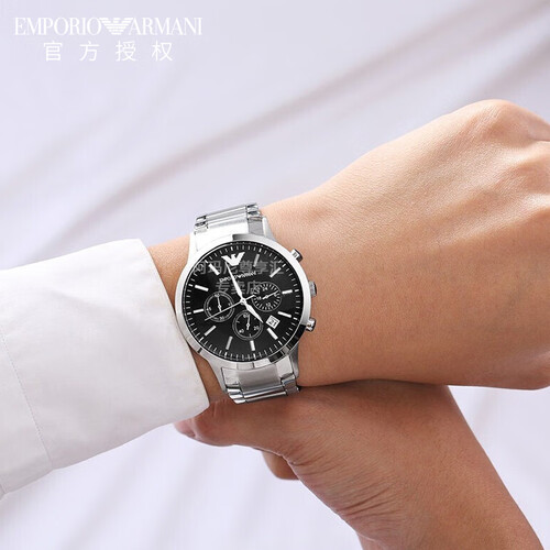 黑色三眼表盘,低调简约,还能多功能计时,满足不同的读时需求。搭配银色金钢表带,让您秀出优雅稳重的魅力风格。