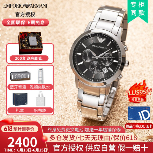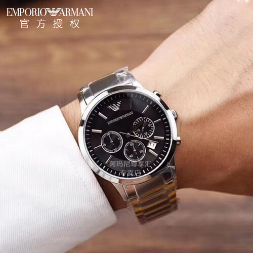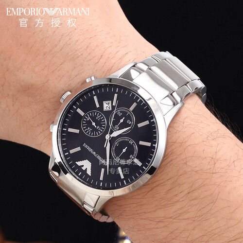 阿玛尼 黑盘钢带手表