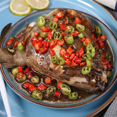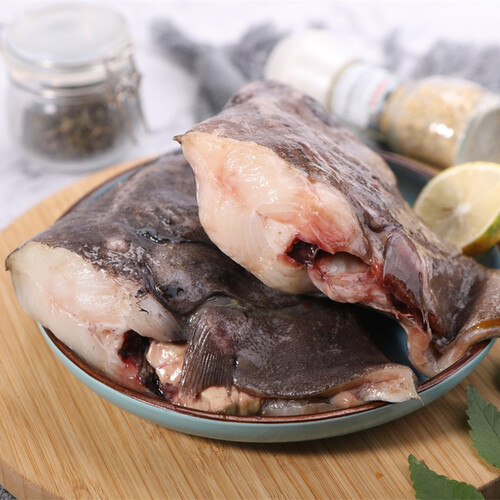 鲽鱼鱼头个大肉肥,纹理清晰。全身乌黑,肉质雪白,口感细腻,有嚼劲。肉多刺少,鲜嫩可口。营养更丰富,适合多种烹饪方法烹饪。