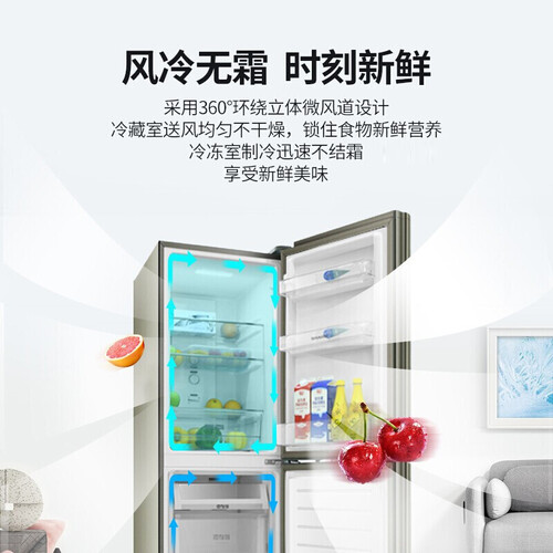 采用360°环绕立体微风道设计,均匀送风不干燥,免去除霜烦恼。小巧的体积设计拥有大容量,可满足日常储鲜需求。