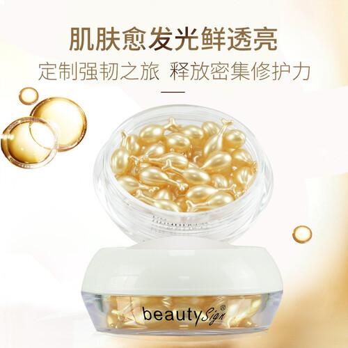 富含多种人体肌肤所需的营养元素,科学配比,均衡营养好吸收,一次一粒刚刚好。采用胶囊精华液剂型,小黄色颗粒,使用更方便。
