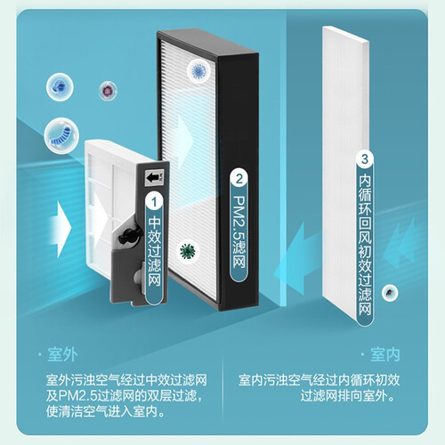 采用双向流循环设计,能够更好地保证室内空气的清新,为你带来舒适的体验。搭载双直流马达,能够产生强劲的动力。