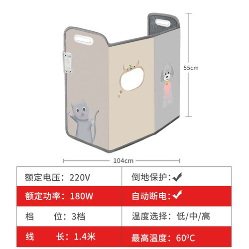 四面环绕型发热,全方位暖意包裹,接受温暖无死角,不惧寒冷。带有倒地自动断电设置,使用更安心。