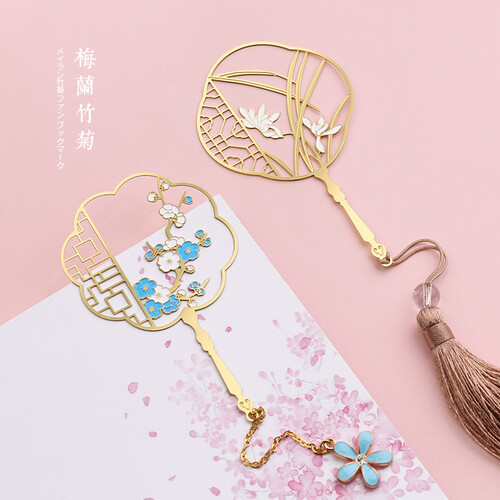一款清新淡雅的学生书签,采用梅兰竹菊镂空元素,更加精致美观,配以彩色的流苏设计,具有古典素雅的韵味。