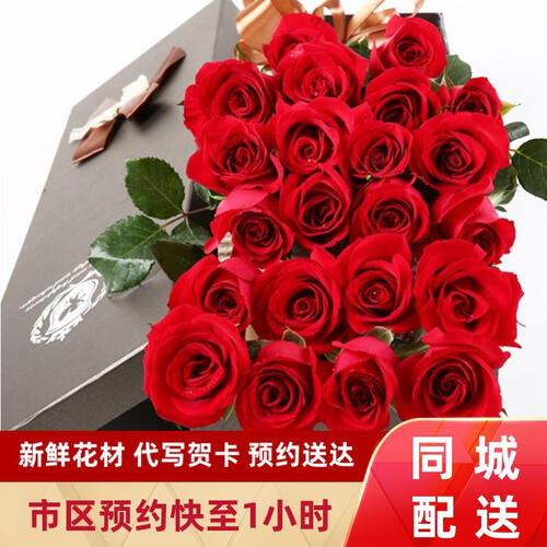 造型优雅的红玫瑰花束礼盒,采用1对1专人专送的配送方式,确保当天送达,让您足不出户即可向心上人传达爱意。