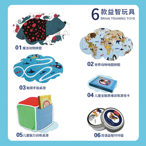 这是由法国引进的经典脑力训练书,囊括了洞洞、翻翻、猜猜、变变等主题,益智兴趣的阅读方式,可以开发孩子的脑力。