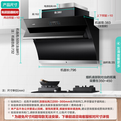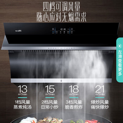 烟机高频自动清洗,可以多方位冲洗,有效清除异味。4挡风量可调,让你根据不同的烹饪方式,随心调节风量。