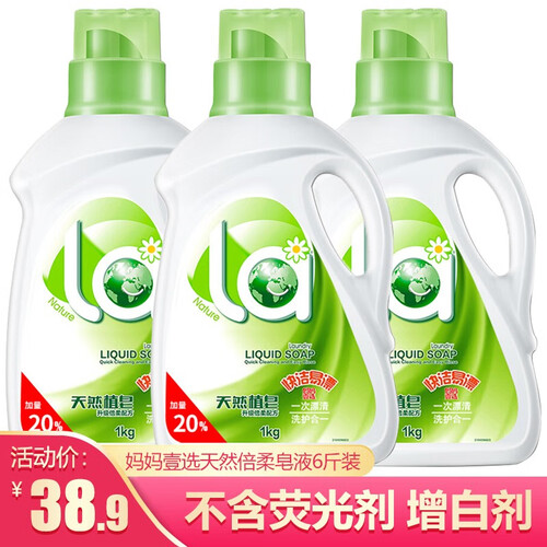 采用环保配方,无荧光增白剂,可以放心洗涤孕妇、小孩子的衣物,守护穿衣健康。组合装,性价比高,放心入手。