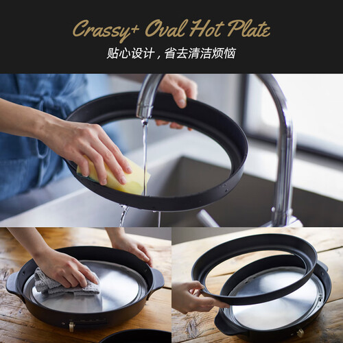 区别于传统方形外观,此款料理锅采用椭圆深锅造型,新颖时尚,可融入各种厨房装修风格,提升家居格调。