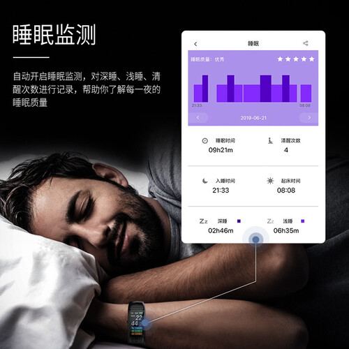 采用智能脉搏波技术,30s即查看血压数据,定期监测心中有数。轻触开启睡眠监测,记录深睡、浅睡等数据情况,了解睡眠质量。