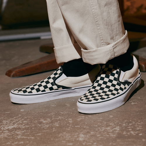 黑白格纹鞋面,时尚简约又美观,很好配着装。一脚蹬式鞋款,穿脱方便不费劲,跟脚度高不易掉。