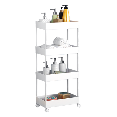 配备万向轮轻松移动,方便取用与置放,拖动不伤地砖。加高层距大小东西随便放,多层收纳结构让生活更加便捷。