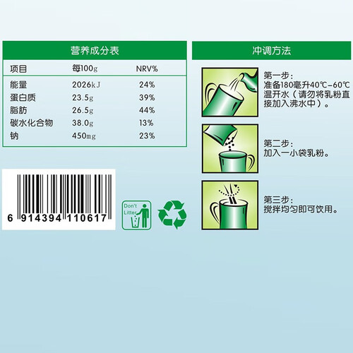 富含人体成长所需的蛋白质、钙铁锌等营养成分,每日两杯满足人体成长所需。好喝有营养,老少皆宜,是全家人的营养之选。