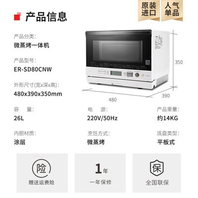 老板 智控旋钮搪瓷内胆蒸烤箱
