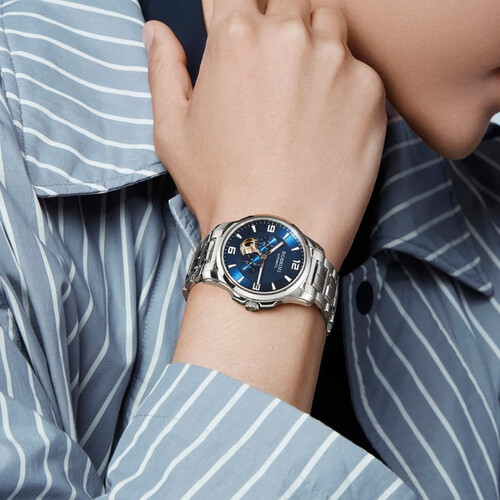 盘面上带有圆形镂空,提升了视觉的层次感,精选钨钢材料打造,增强抗磨损性,还有双眼盘面,读秒更方便。