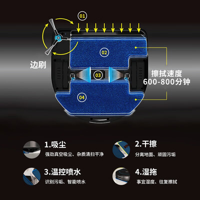 准确定位系统,可快速确定清扫区域,提升清洁效率,节省时间;高频率湿拖系统,无惧脏东西粘附在地板上,清洁性能强劲。