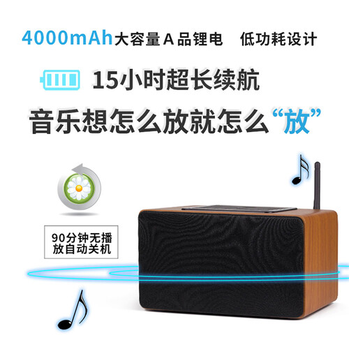 采用大容量锂电池,功耗低,续航能力长久。具有WiFi联网功能,可以在线播放音源,无需下载更便捷。