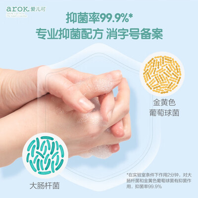 爱儿可抑菌儿童洗手液特别添加PHMB抗菌剂,清洁不留菌,宝宝洁净,妈妈安心。