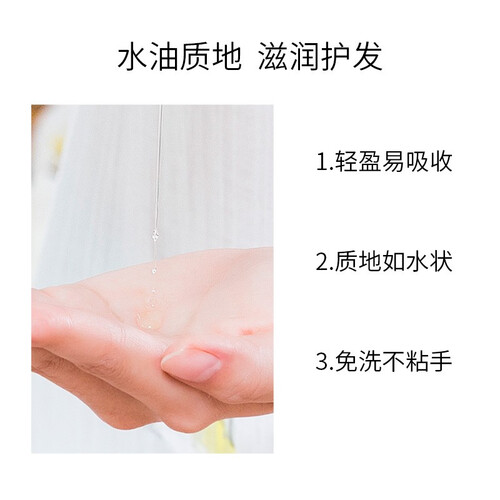 发丝护理就是这么简单,3S极速出街,发丝顺滑水润。免洗护发配方,清爽质地不油腻,不沾手,不厚重,发丝时刻蓬松飘逸。