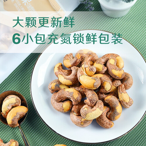 良品铺子大肾果无添加,仅少许食用盐调味,保留新鲜原果的淡淡香甜,并且充氮保鲜,锁住腰果酥脆口感。