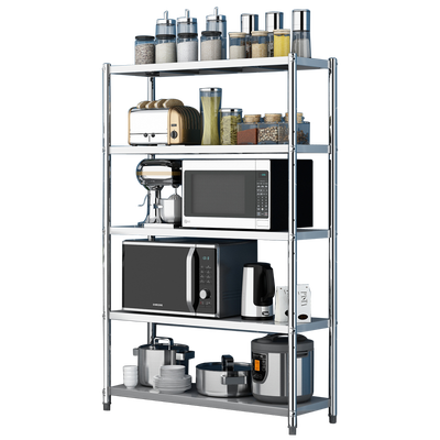 拥有加厚不锈钢层板,搭配拉丝工艺,触感光滑,污渍沾附好擦拭。新升级五层收纳空间,让厨房物品有序摆放。