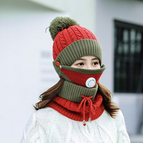 浩冠加绒加厚护耳毛线帽