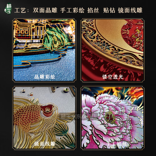 双面立体雕刻、手工彩绘、金属立线,于细节之处呈现出艺术的光辉。采用铂晶材质经久耐用,而且安全卫生。