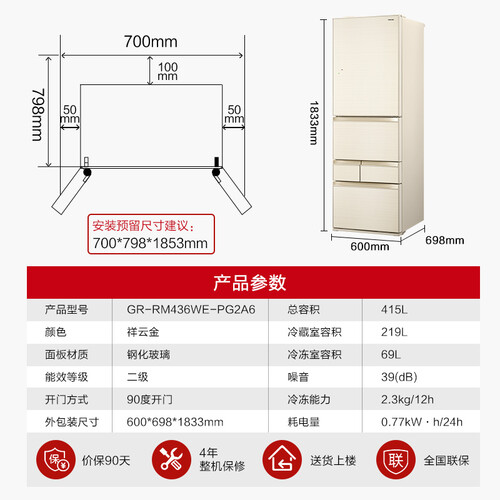 东芝 五门格局冰箱