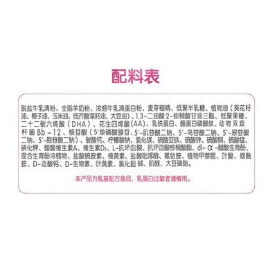 采用先进的干燥工艺,使其奶粉的粉质细腻蓬松,入水冲泡可以更好的溶解,不易出现挂壁的现象。
