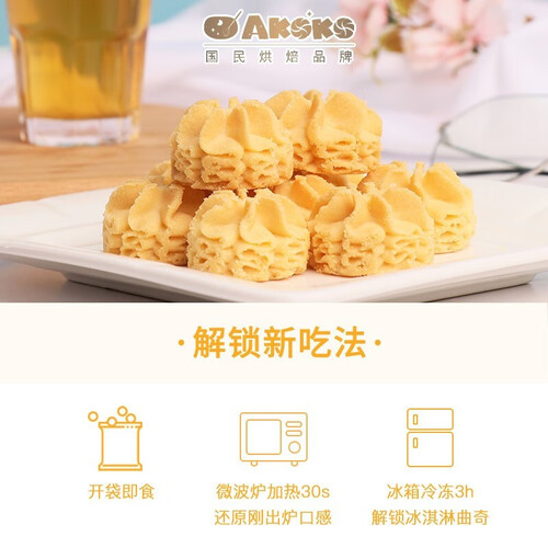 入口即化的细腻夹心小曲奇饼干,口感细腻绵柔,受热均匀,仿佛漫步云端。造型如同小花朵一样,非常清新可爱,微微甜而不腻。
