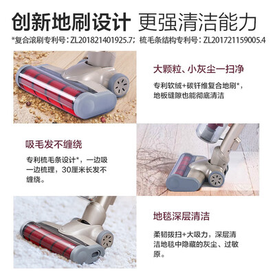 防缠绕的滚刷设计,有效延长刷头的使用时间;搭载独立式的刷头电机,轻松应对顽固的灰尘。