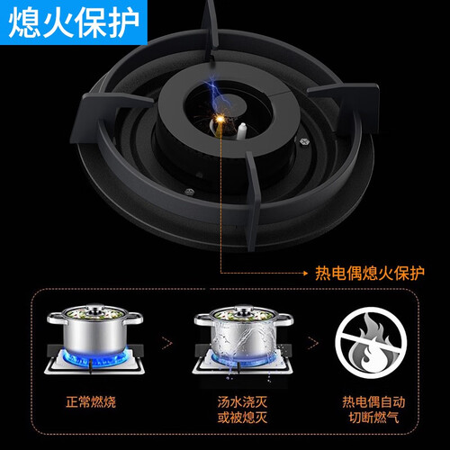 选用的铜火盖,不易生锈变形,避免火孔堵塞。五挡火力调节,轻松应对不同的烹饪方式。