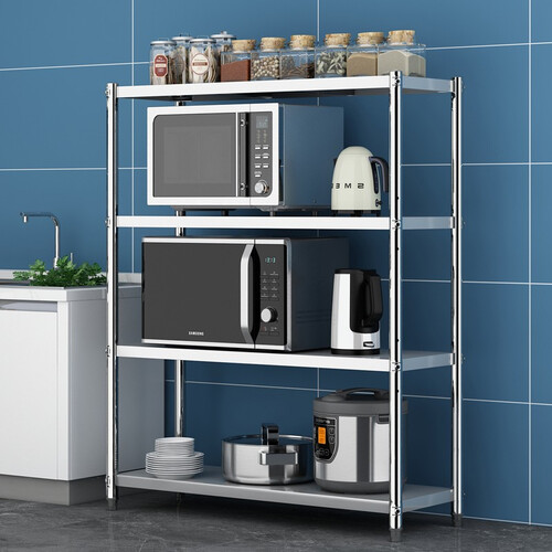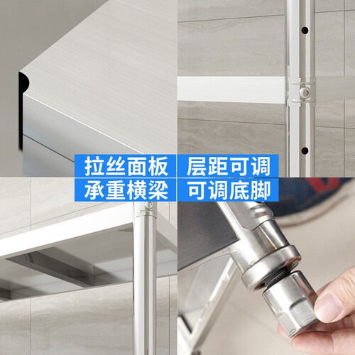 立柱加粗,层板加厚,承重更强,容量升级。采用国外不锈钢拉丝工艺,光滑亮洁,不易生锈。横梁设计,大大增加承重力。