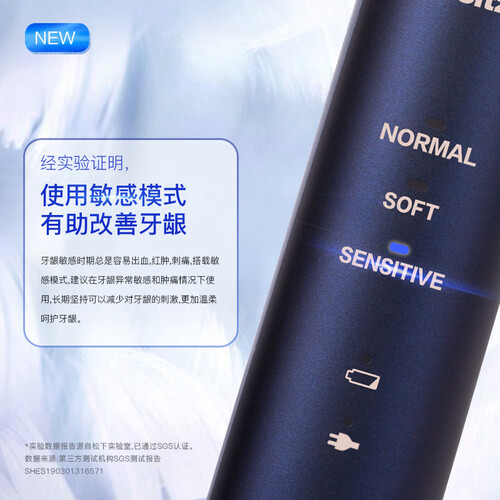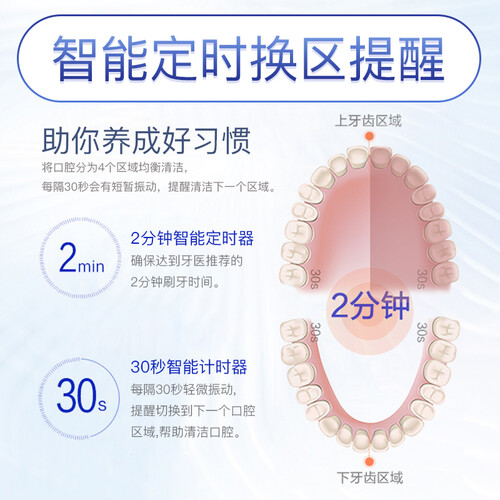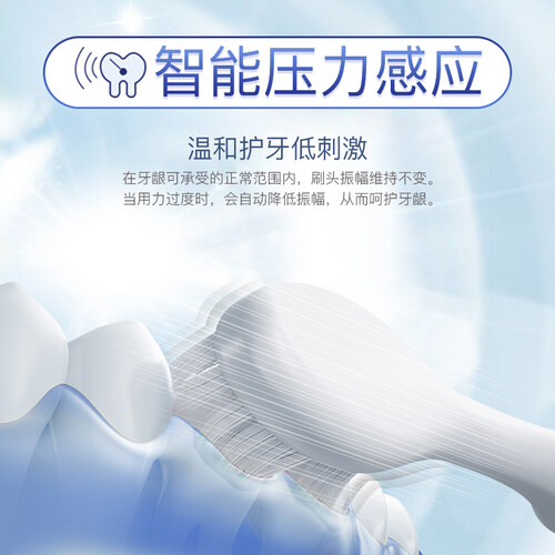 刷头选用的是柔软细毛,能够有效清除藏在牙齿缝里的污渍。智能压力感应,当你用力过猛时它会自动降低振幅,呵护你的牙龈。