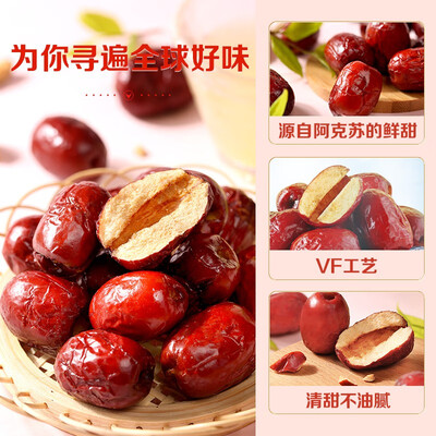 无核香酥脆枣,清甜不油腻。采用VF真空低温脱水技术,更好的保存了营养。