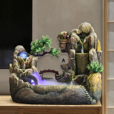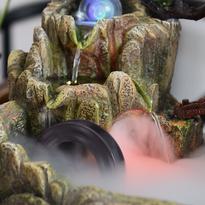此款摆件配备有雾化器,能将流经的水流雾化成水汽,帮助提高空气湿度,比较适合空气干燥的环境使用。