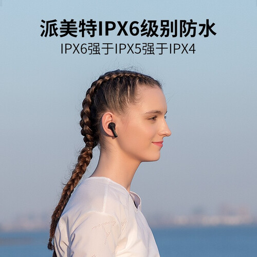 采用无按键设计,单手触摸就能完成各种操作,音乐一触即发。此外采用IPX6级防水设计,无惧大汗淋漓,运动更自由。