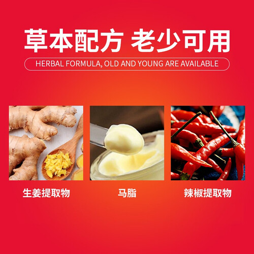 蕴含生姜、麝香草酚等提取物,抵抗寒冷,能够缓解手足冰凉的现象。涂抹在患处,改善干痒,加入了甘油很好平衡水油的分泌。