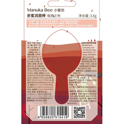 膏体是黑红色的,上嘴呈水润的番茄红,令双唇如打了玻尿酸般红润饱满;添加麦卢卡蜂蜜、橄榄油和霍霍巴籽油成分,一抹持久保湿。