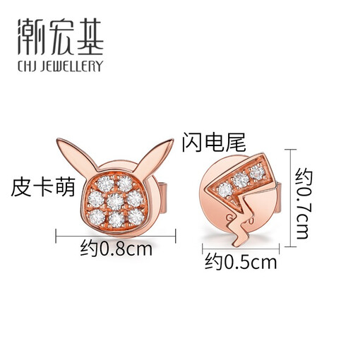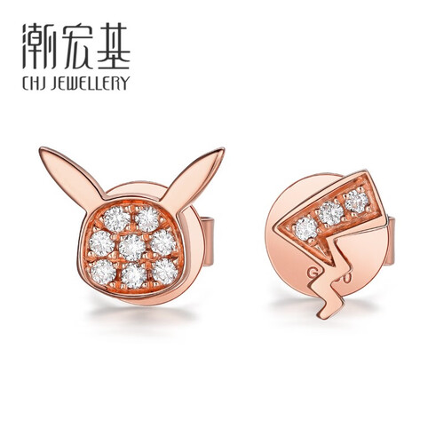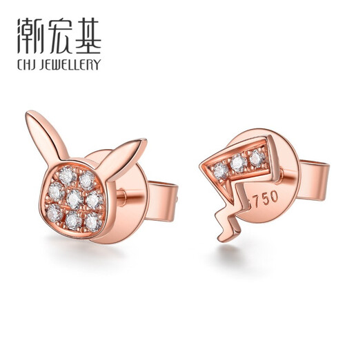 潮宏基 闪钻皮卡丘K金耳钉
